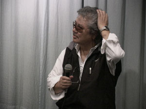 Wakamatsu ci aspetta all’ingresso della sala. Si mostra cordiale e disponibile. Il suo modo diretto di rapportarsi, l’ironia e il tono semplice, ricco di espressioni colloquiali, libera l’atmosfera da inutili, quanto equivoci, rituali di cortesia. L’impero dei segni e dei codici sembra dissolversi dietro le sue frequenti risate. Così, dopo le presentazioni di rito, zigzagando fra strade interrotte e lavori in corso, ci dirigiamo verso il piccolo caffé dove, sorseggiando sakè, Wakamatsu accetta di rispondere alle nostre domande.